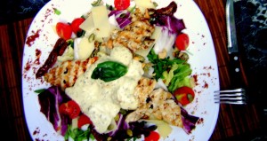 E absolut yummy probabil pentru ca are de toate – piept de pui la gratar (crispy on the outside), salata verde, rucolla, radichio, andive, nuci, cashew, seminte de dovleac, rosii cherry, rosii uscate, parmezan si un sos delicos that helps a lot. Mda, nu prea mai seamana a side dish, probabil de asta imi place asa mult.