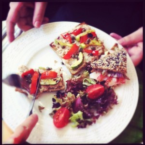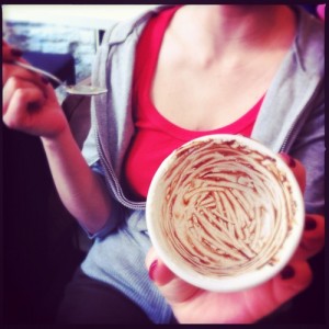 Cand merg acolo ma rasfata cu toate tampeniile care-mi trec prin cap, inclusiv jumatate de portie de sandwich cu sunca de curcan – jumatete cu salata de ton.