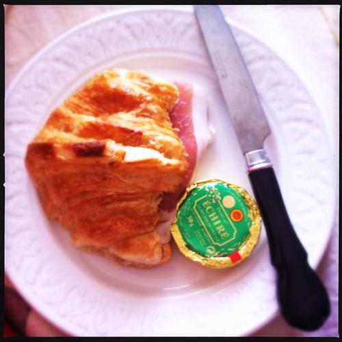 Un croissant de la Rue du Pain, cateva felii de prosciutto (de unde s-a nimerit, de data asta) si unt Échiré (demi sel, best shit ever) de la Bacania Veche. Cam de atat e nevoie ca sa incep ziua bine, pacat ca I always skip breakfast (shhh, don’t tell). Pe de alta parte, I can have this combo la orice ora si sa spun ca e pranz sau cina :)